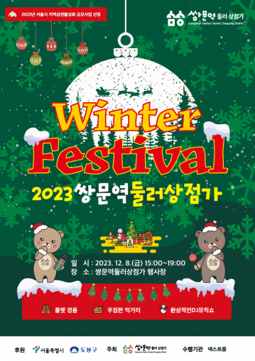 도봉구(구청장 오언석)가 오는 12월 8일 오후 3시부터 7시까지 쌍문역 둘러상점가(노해로60길 일대)에서 ‘2023년 쌍문역 둘러상점가 윈터 메스티벌’을 연다고 밝혔다.