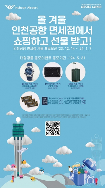 인천국제공항공사(사장 이학재)는 오는 12월 14일(목)부터 내년 1월 7일(일)까지 25일간 인천공항 면세점을 이용하는 여객을 위한 겨울 프로모션을 진행한다고 12일 밝혔다.