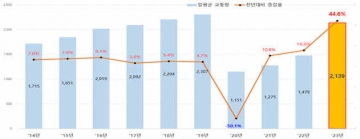 지난해 우리나라 하늘길을 이용한 항공기는 전년('22년) 대비 약 44.6% 증가*한 총 78만여 대(하루 평균 2,139대)로 나타났다.