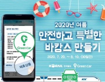 한국철도(코레일)가 여름 휴가철을 맞아 안전한 소규모 가족단위 여행객을 위해 오는 20일부터 다음달 10일까지 공유차 서비스 ‘그린카’와 공동으로 할인 이벤트를 진행한다고 밝혔다.