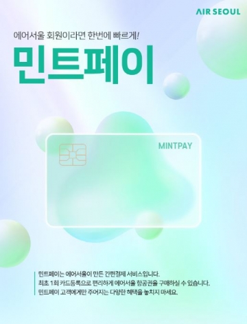 에어서울(대표이사 조진만)이 ‘민트페이’ 이용 고객 대상 프로모션을 어제(5일)부터 시작했다고 오늘(6일)밝혔다.