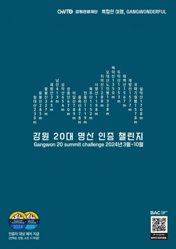 강원관광재단(대표이사 최성현)은 강원형 산악관광 대표 상품으로 자리 잡은 ‘강원 20대 명산 인증 챌린지’를 올해 3월부터 10월까지 운영한다고 밝혔다.