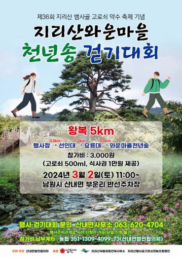 2024년 새봄을 맞이해 36번째 지리산 뱀사골 고로쇠 약수축제가 오는 3월 2일(토) 오전 10시 남원시 산내면 뱀사골(반선 주차장)일원에서 개최된다.