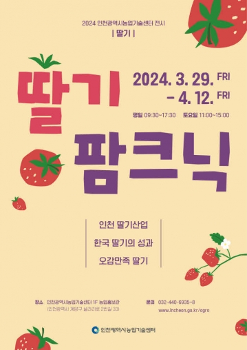인천광역시 농업기술센터는 오는 3월 29일부터 2주간 농업기술센터 농업홍보관에서 전시 ‘딸기 팜크닉’을 운영한다고 밝혔다.