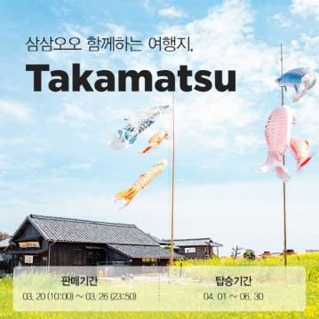 에어서울 관계자는 “다카마쓰는 리쓰린 공원이나 쇼도시마, 나오시마 섬 등 여유로운 스팟에서 만개한 봄꽃여행을 즐기기 좋은 소도시”라며, “가족이나 친구들끼리 이번 프로모션을 이용해 여행을 다녀오시기 추천드린다”고 말했다.