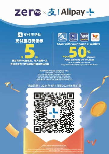 프로모션 기간 외국인 관광객은 제로×알리페이 전용 QR을 통해 모바일 결제 시, 구매액의 최대 50% 할인 혜택(최대 한화 2만 원, 1인 1회)을 받을 수 있다.