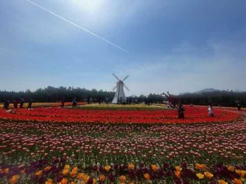 빨강, 노랑, 보라, 흰색 등 원색의 옷을 입은 백만 송의 튤립꽃이 파도, 바람과 함께 아름다운 자태를 뽐내는 섬 튤립 축제가 오는 14일까지 계속된다.