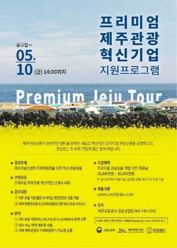 제주특별자치도와 제주관광공사(사장 고승철)는 오는 5월 10일까지 「프리미엄 제주관광 혁신기업 지원프로그램」참가 기업을 모집한다고 밝혔다.