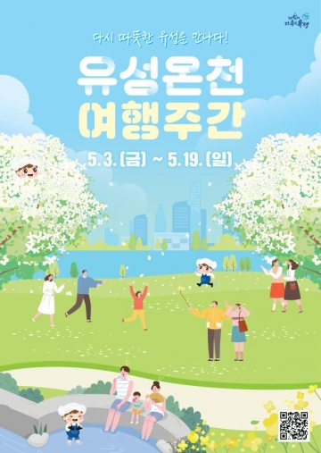 특히 여행주간 기간 중 유성온천문화축제(5.10.~5.12.)와 유성온천 봄꽃 전시회(5.3.~5.26.)가 개최되어 방문객은 볼거리와 즐길거리를 만끽할 수 있으며, 자세한 내용은 유성구 홈페이지 또는 공식 SNS를 통해 확인할 수 있다.