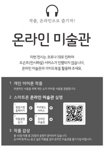 온라인 미술관에서는 국립현대미술관 미술은행 소장품 45점 중 20점의 작품설명을 음성으로 들을 수 있다.