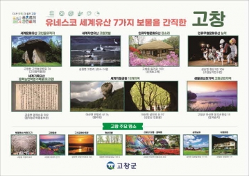 특히, 최근에는 ‘유네스코 세계유산 7곳 찾아 즐기는 스탬프투어’로 지역 관광 프로그램의 새로운 혁신을 주도하고 있다. 스탬프투어는 판소리박물관, 고인돌박물관, 동학(전봉준 장군 동상), 농악전수관, 운곡습지, 선운산, 람사르갯벌센터 총 7개 지점으로 구성되어 있다.