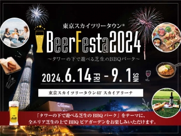 매년 호평을 받고 있는 ‘도쿄 스카이트리 타운 비어 페스타 2024(東京スカイツリータウン®BeerFesta 2024)’는 도쿄 스카이트리 타운 4층 스카이 아레나에서 6월 14일부터 개최 중에 있다. 올해는 ‘타워의 아래에서 즐기는 잔디밭의 BBQ 파크’를 콘셉트로 맥주와 바비큐를 맛보며 잔디밭 위에서 즐겁게 노는 공간을 제공한다. 7가지 생맥주를 비롯해 칵테일과 다양한 음료, 고기 메뉴와 술안주, 천연 얼음으로 만든 빙수 등 다양한 메뉴로 운영한다. 또한 가든 체어와 피크닉 공간, 어린이용 장난감 등을 마련하는 등 방문객들이 쾌적하게 시간을 보낼 수 있는 공간으로 조성했다.