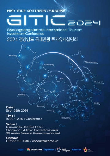 경상남도(도지사 박완수)는 다음 달 26일 창원 CECO 컨벤션센터에서 열리는 '2024 경상남도 국제관광 투자유치 설명회'에 참석할 국내외 호텔·리조트 기업 관계자를 모집한다고 밝혔다.