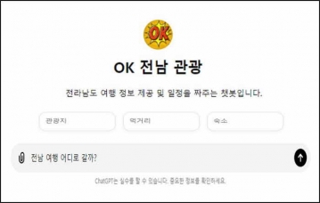 실제 지난 1일 열린 전남 특화 지피티 제작용역 완료보고회에서 OK 전남관광 챗봇을 시연한 결과 ‘전남 여행 어디로 갈까?’라는 질문에 전남의 다양한 인기 관광지를 추천했다. 시간대별 여행지 및 식당을 포함한 여행 계획도 작성해 준다.