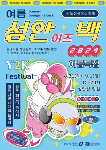 청주시와 청주시문화산업진흥재단(대표이사 변광섭, 이하 청주문화재단)이 오는 8월 31일부터 9월 1일까지 이틀간 성안길 일원에서 2024 청주원도심골목길축제 ‘여름:성안이즈백’을 개최한다고 밝혔다.
