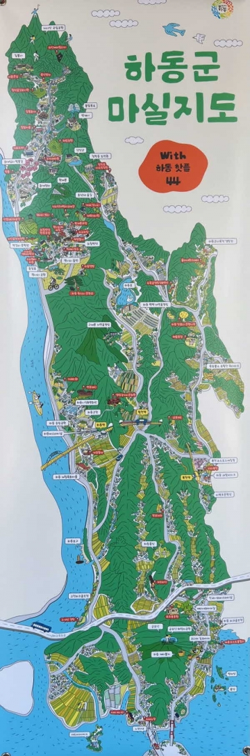 하동군이 섬진강에서 남해까지 이어지는 물길을 따라 하동의 대표 관광지와 하동의 핫플레이스 44곳을 모두 담아낸 새로운 "하동마실지도"를 제작했다. 이 지도는 네덜란드 로테르담에서 스위스 바젤까지 라인강을 따라 주요 관광지를 소개한 ‘THE LONG RHINE TOUR’ 지도에서 착안해 만들어졌다.