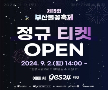 부산시(시장 박형준)와 (사)부산문화관광축제조직위원회는 오는 11월 9일에 개최되는 「제19회 부산불꽃축제」의 유료좌석을 오늘(2일) 오후 2시부터 공식 판매한다고 밝혔다
