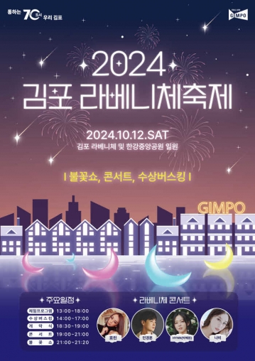 김포시(시장 김병수)는 김포시 대표축제인 ‘김포 라베니체축제’를 오는 10월 12일 토요일 장기동 소재 한강중앙공원 및 라베니체 일원에서 개최한다고 밝혔다.