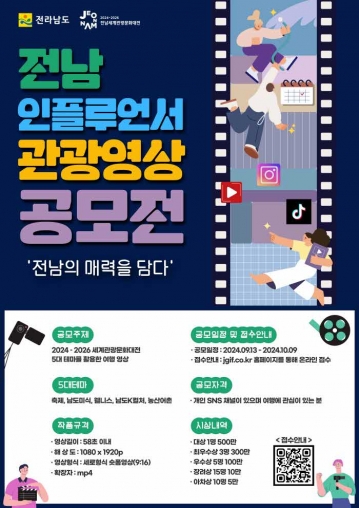 전라남도는 지역의 아름다움과 문화, 우수한 관광자원을 전 세계에 알리기 위해 ‘전남 글로벌 인플루언서 페스티벌’ 일환으로 영상공모전을 개최한다고 밝혔다.
