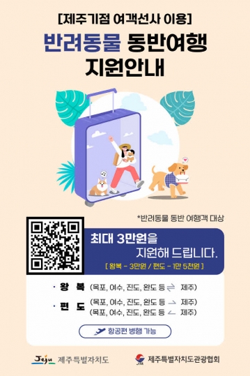 제주특별자치도와 제주도관광협회가 제주 기점 뱃길 관광 활성화와 반려동물 문화 정착을 위해 반려동물 동반 제주 여행객을 대상으로 지원금을 지급하는 등 다양한 지원사업을 적극적으로 추진하고 있다.