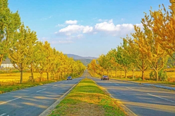 10월 말부터 11월 초까지 통일전 앞으로 쭉 뻗은 약 2km의 도로 양옆 은행나무가 아름답게 물들어 걷고 싶은 길, 드라이브하고 싶은 도로로 만들어 준다.
