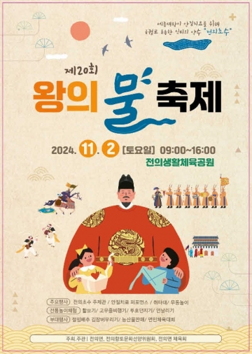 세종특별자치시 전의면(면장 송재숙)과 전의면향토선양위원회는 오는 11월 1일부터 2일까지 전의면 생활체육공원에서 ‘제20회 왕의물 축제’를 개최한다. 이 축제는 세종대왕의 안질 치료를 위해 천연 약수 ‘초수’를 한양으로 보내며 충심을 다했던 전의면민의 역사를 기리기 위해 지난 2003년부터 열려온 세종시 대표 축제 중 하나이다.