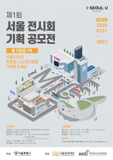 서울시와 서울관광재단(대표이사 이재성), 한국전시산업진흥회는 서울시를 대표할 신규 전시회를 발굴・육성하기 위하여 「2020년 제1회 서울 전시회 기획 공모전」을 개최한다.