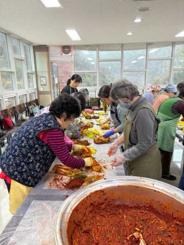 이튿날에는 전날 절여둔 배추를 이용해 김장 김치 양념 버무리기 체험이 이어졌다. 관광객들은 직접 담근 김치를 용기에 담아 기념품으로 가져갔으며, 김장 김치와 함께 돼지고기 수육을 맛보며 한국 전통 음식의 깊은 맛에 감탄했다. 특히 일본 관광객들은 김장을 함께 나누고 즐기는 한국의 전통 문화에 큰 호감을 보이며 엄지를 치켜세웠다.