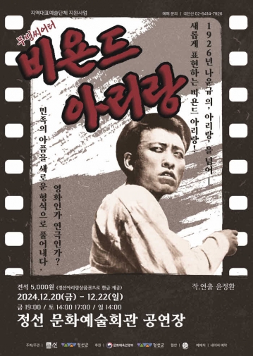 1926년 춘사 나운규 감독이 제작한 흑백 무성영화 아리랑이 무빙씨어터 <비욘드 아리랑>으로 재탄생해 정선문화예술회관 무대에 오른다. 오는 12월 20일부터 22일까지 열리는 이번 공연은 연극과 영화가 결합된 새로운 장르로, 관객들에게 전혀 새로운 예술적 경험을 선사할 예정이다.