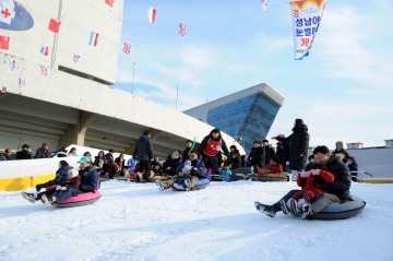 스케이트장 옆에 있는 눈썰매장은 602㎡ 규모다. 가족 단위 시민이 이용할 수 있는 8레인의 슬로프(14m*43m)를 갖췄다.
