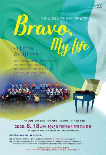대전시립합창단이 오는 18일 오후 7시 30분 대전예술의전당 앙상블홀에서 무더위를 이기고 코로나 블루를 시원하게 날릴 기획음악회 브라보 마이 라이프(Bravo, My Life)를 무대에 올린다.