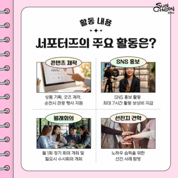 참여 대상은 순천에 생활 기반을 둔 만 19세에서 45세 사이의 청년으로, 순천을 사랑하며 지역 관광 콘텐츠 활성화에 관심 있는 시민이라면 누구나 지원할 수 있다.