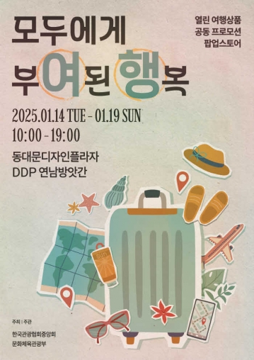 한국관광협회중앙회(회장 이경수)는 1월 14일부터 19일까지 6일간 연남방앗간 DDP점에서 문화체육관광부와 함께 발굴한 다섯 가지 테마의 ‘열린 여행상품’을 소개하는 팝업스토어를 운영한다고 밝혔다. 이번 행사는 관광취약계층을 포함한 대중에게 열린 여행상품의 매력을 알리고, 모두가 여행을 즐길 수 있는 환경 조성을 목표로 한다.