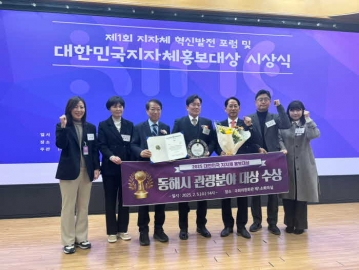 동해시는 지난 5일 서울 국회의원회관 제1소회의실(영등포구 의사당대로1)에서 열린 ‘2025 대한민국 지자체 홍보대상 시상식’에서 관광 분야 우수 홍보 지자체로 선정되었다고 밝혔다.