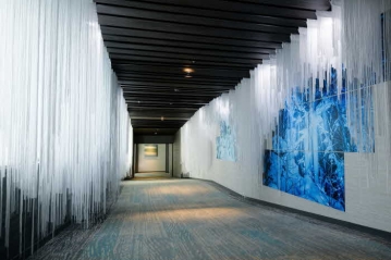 겨울의 오이라세계류에서는 주야간에 따라 다른 얼음폭포의 모습도 관찰할 수 있다. 낮에는 태양의 빛이 반짝반짝 빛나는 얼음폭포, 밤에는 라이트업에 의해 환상적인 색으로 변하는 얼음폭포를 호텔 안에서도 체험할 수 있도록 시간에 따라 다른 모습의 아트패널과 조명을 설치했다.