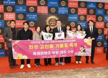 화순군(군수 구복규)은 25일 서울 피스앤파크 컨벤션(용산 전쟁기념관)에서 열린 제13회 대한민국축제콘텐츠대상 시상식에서 ‘2024 화순 고인돌 가을꽃 축제’가 축제콘텐츠 부문 대상 수상의 영예를 차지했다고 밝혔다.