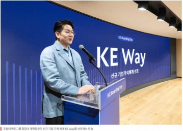 조 회장은 이날 창립 기념사를 통해 “올해 본격적인 통합 항공사 출범 준비를 시작하기에 앞서 새로운 기업 가치 체계를 제시하고자 한다”며 “‘KE Way’는 우리 모두가 하나의 목표를 향해 가는 여정의 구심점이자, 대한항공의 정체성을 규정하는 핵심이 될 것”이라고 전했다.