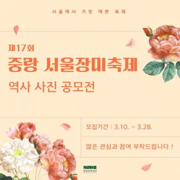 중랑구(구청장 류경기)와 중랑문화재단(이사장 조민구)이 제17회 중랑 서울장미축제를 맞아, 더욱 많은 구민이 함께 축제를 만들어 갈 수 있도록 다양한 공모전을 진행한다.