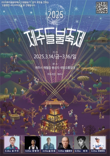 2025 제주들불축제가 ‘우리, 희망을 피우다!’라는 주제로 3월 14일부터 16일까지 사흘간 애월읍 새별오름 일원에서 개최된다. 이번 축제는 한 해 동안의 어려움을 딛고 새로운 희망을 기원하는 의미를 담아, 미디어파사드와 디지털 기술을 활용한 다채로운 공연과 친환경 프로그램으로 관람객을 맞이할 예정이다.