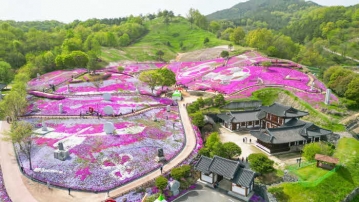 3만㎡ 규모의 공원 터에는 화려한 꽃잔디가 만개, 분홍색 카펫이 깔린 야외미술관에 서 있는 듯한 이색적인 볼거리를 제공한다.