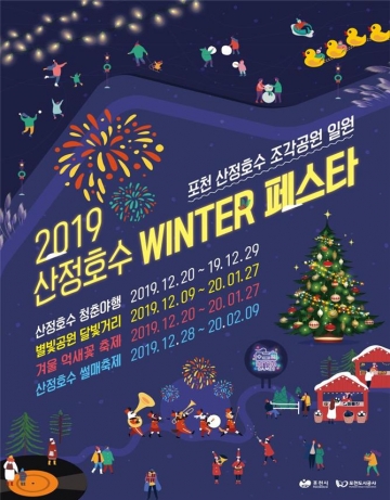 올해 처음으로 개최되는 ‘2019 산정호수 윈터페스타’는 ‘산정호수 청춘야행’ ‘별빛공원 달빛거리’ ‘겨울 억새꽃 축제’ ‘산정호수 썰매축제’ 등 4개의 행사로 구성돼 있으며, 행사별 일정이 상이하며 내년 2월 9일까지 개최된다.