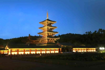 야간에는 설치된 경관조명으로 인하여 22시까지 백제문화단지 곳곳의 야경과 백제 고도의 달빛을 벗 삼아 산책하는 시간을 가져볼 수 있다.