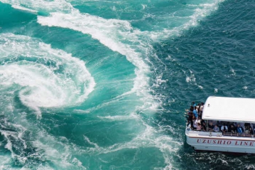 더욱 아찔하게 우즈시오를 즐기고 싶다면 관조선에 오르면 된다. 우즈시오기선과 나루토관광기선이 각각 30분~40분 간격으로 거대한 우즈시오 코앞까지 접근하는 관조선을 운영하고 있으니 오감으로 우즈시오를 만끽하고 싶다면 더 없는 선택이 된다.