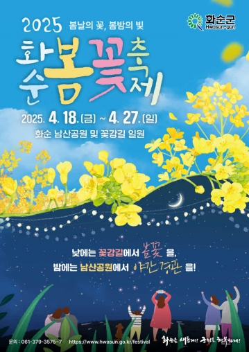 「2025 화순 봄꽃 축제」가 오는 4월 18일부터 27일까지 10일간 화순읍 남산공원과 꽃강길 일원에서 개최된다.