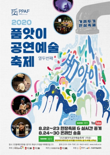 화성시문화재단과 극단민들레는 자연과 예술이 하나 되는 축제, 코로나19에 적응하는 거리두기 안심축제 ‘2020 품앗이공연예술축제’를 8월 19일(수)부터 8월 30일(일)까지 개최한다.