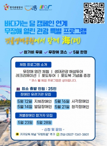 무빙트립은 한국관광공사 경인지사, 경기도 시흥시와 함께 5월 바다가는 달 캠페인 연계 무장애 열린 관광 특별 프로그램 ‘갯골생태공원에서 함께 海(해)’ 상품을 운영한다고 22일 밝혔다.