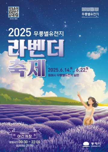 동해시는 에메랄드빛 호수와 자연 속 감성 명소로 사랑받는 무릉별유천지에서 오는 6월 14일부터 22일까지 9일간 ‘2025 무릉별유천지 라벤더 축제’를 개최한다고 밝혔다.