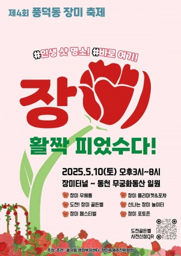 이향은 풍덕동장은 “올해 장미축제는 꽃을 매개로 주민과 방문객이 함께 웃고 소통하는 특별한 자리가 될 것”이라며, “많은 시민들이 풍덕동을 찾아오셔서 화려하게 피어난 장미와 함께 봄날의 풍성한 아름다움을 마음껏 누리시길 바란다”고 전했다.