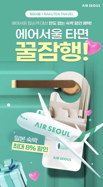 에어서울(대표이사 김중호)이 일본 최대 호텔 예약 사이트인 라쿠텐 트래블과 제휴 프로모션을 시작한다.