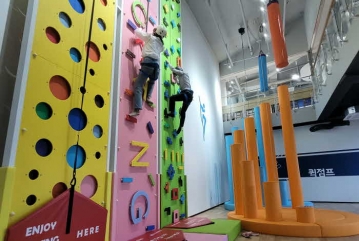 실내 스포츠 복합시설인‘콩이관’1층에서는 피트니스, 사이클 시뮬레이션, 암벽등반, 디디엠 등 4차 산업 기반의 체험형 콘텐츠가 마련되어 있어 어린이와 청소년 모두의 흥미를 끌고 있다.
